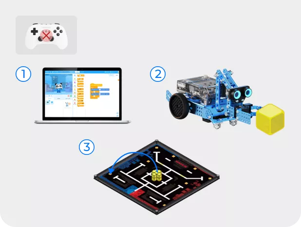 Through hands-on programming, students will gradually learn to control mBot2's movements, from basic tasks like moving forward and avoiding obstacles to more complex ones like using robotics arm to grab, carry and release object with a programmable Bluetooth controller.
